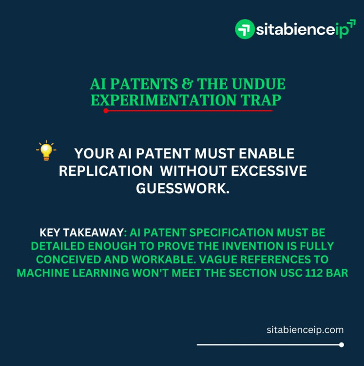 Patents must provide enough guidance to ensure replication is possible without “undue experimentation.” In other words, the specification must provide sufficient guidance so that the amount of experimentation required is not “undue” for meeting the Section 112 requirements for artificial intelligence/machine language inventions.